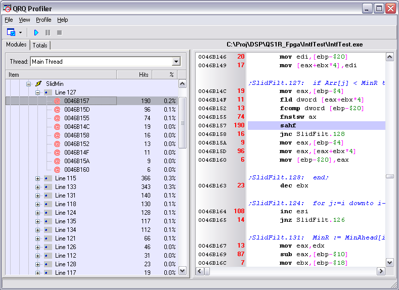 Profiling results at the machine instruction level.